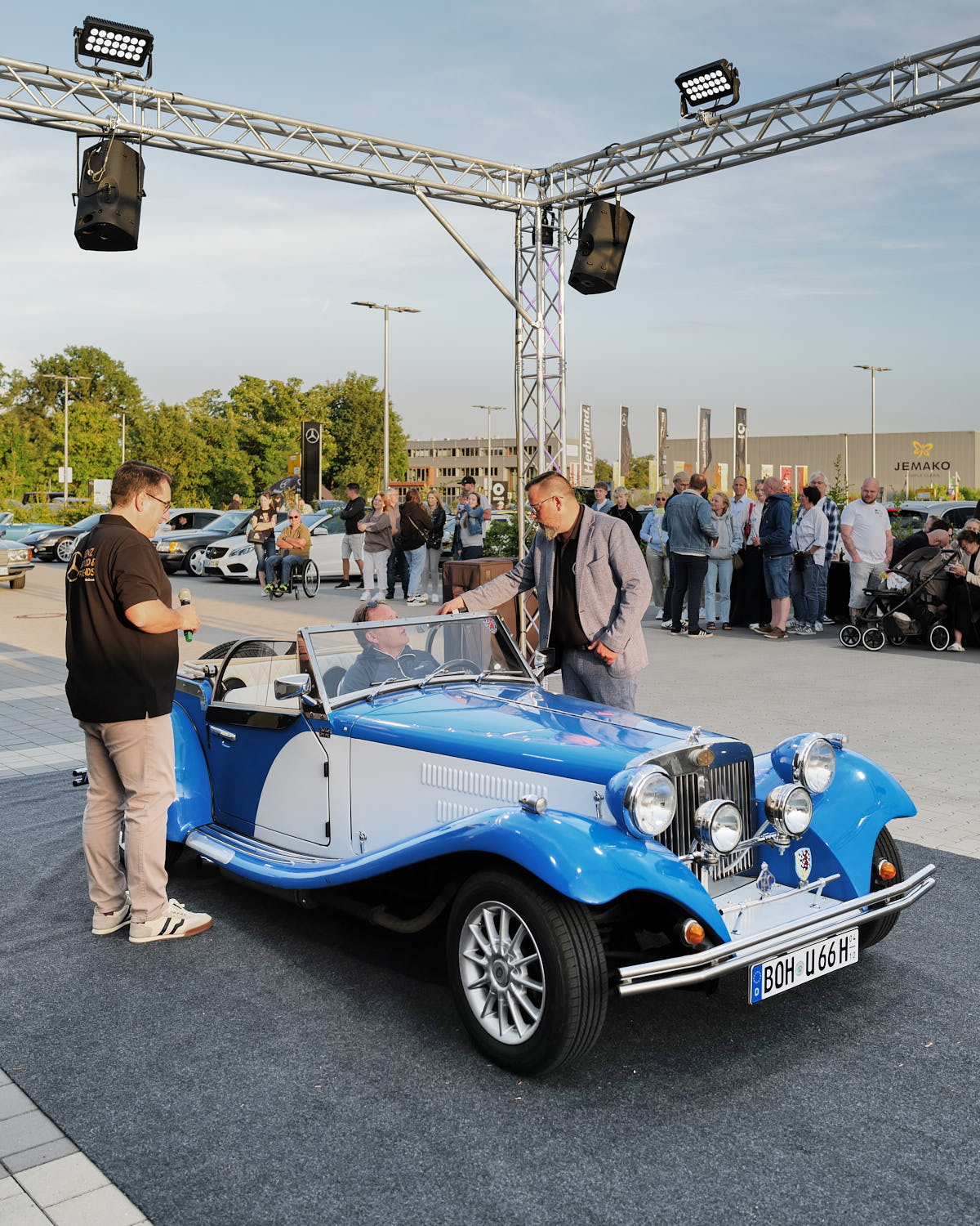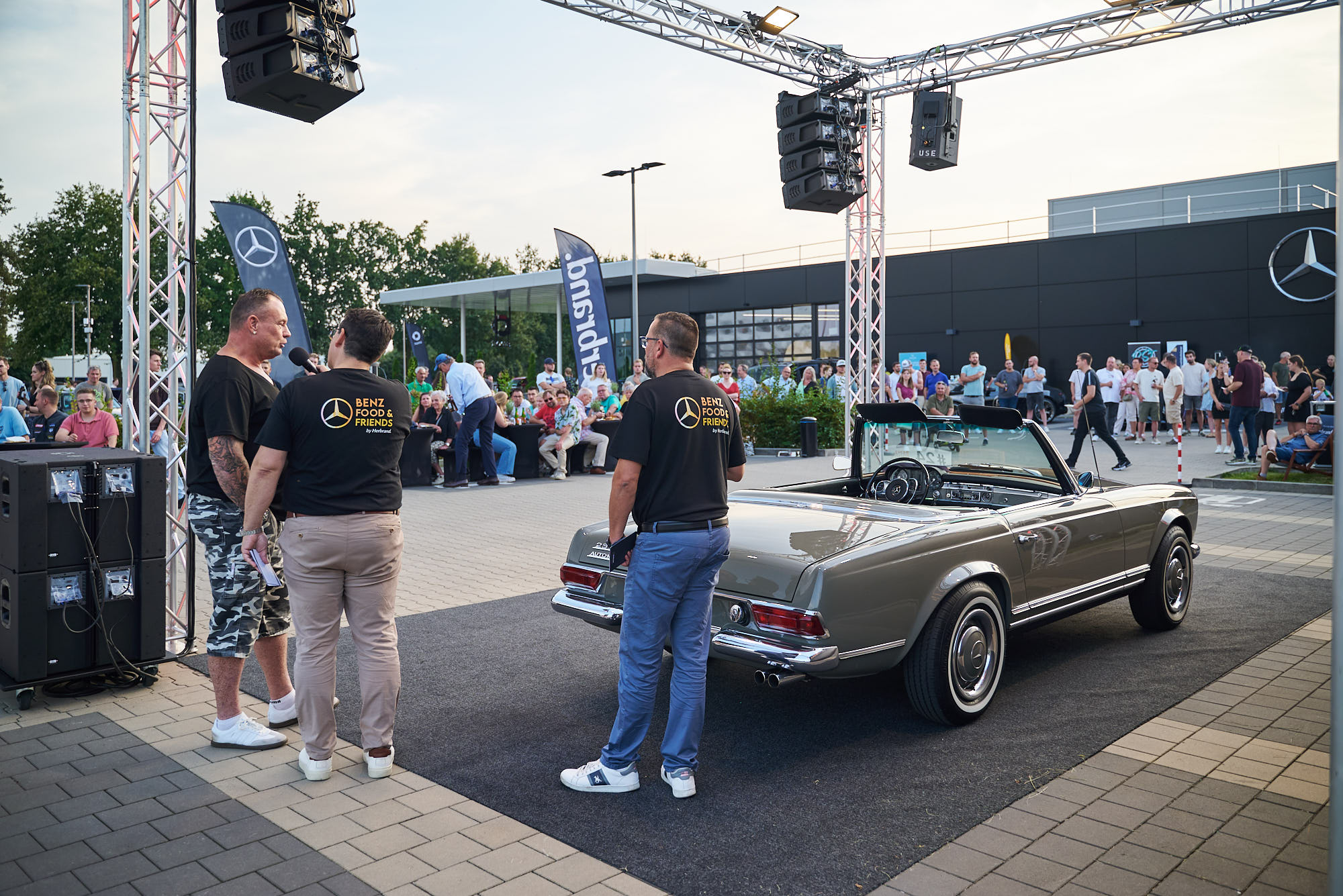 Vor beeindruckender Kulisse und bestem Wetter kamen Ende August 2024 über 300 Automobil-Enthusiasten in unserem Center in Rhede zusammen, um insgesamt 80 Fahrzeuge aller Marken zu feiern. 11 Schmuckstücke wurden dem BFF Publikum auf der Bühne von unseren zwei Moderatoren näher vorgestellt. Wir bedanken uns bei JEMAKO und BST sowie allen, die diesen Abend zu etwas ganz Besonderem gemacht haben, und freuen uns, wenn es wieder heißt: Benz, Food & Friends!