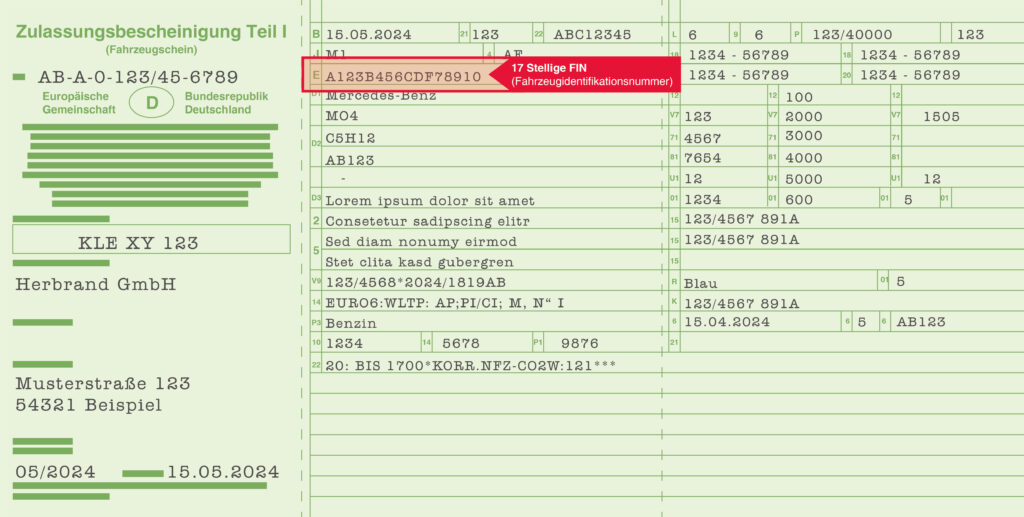 Ihre FIN finden Sie im Fahrzeugschein.